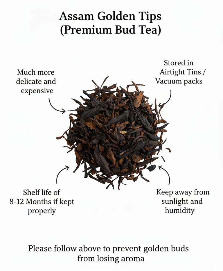 Experience the richness of tradition with our Assam Golden Tips Tea, a prized variety sourced from the lush tea gardens of Assam. Renowned for its golden-tipped leaves, this tea is celebrated for its bold flavor, malty sweetness, and smooth finish that lingers with every sip.