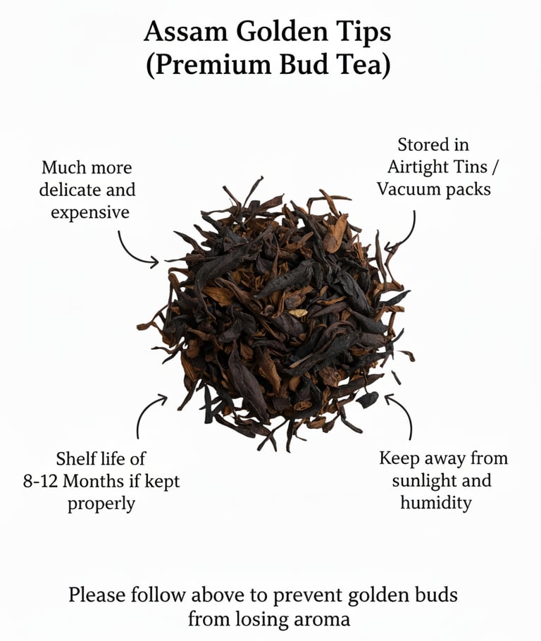 Experience the richness of tradition with our Assam Golden Tips Tea, a prized variety sourced from the lush tea gardens of Assam. Renowned for its golden-tipped leaves, this tea is celebrated for its bold flavor, malty sweetness, and smooth finish that lingers with every sip.